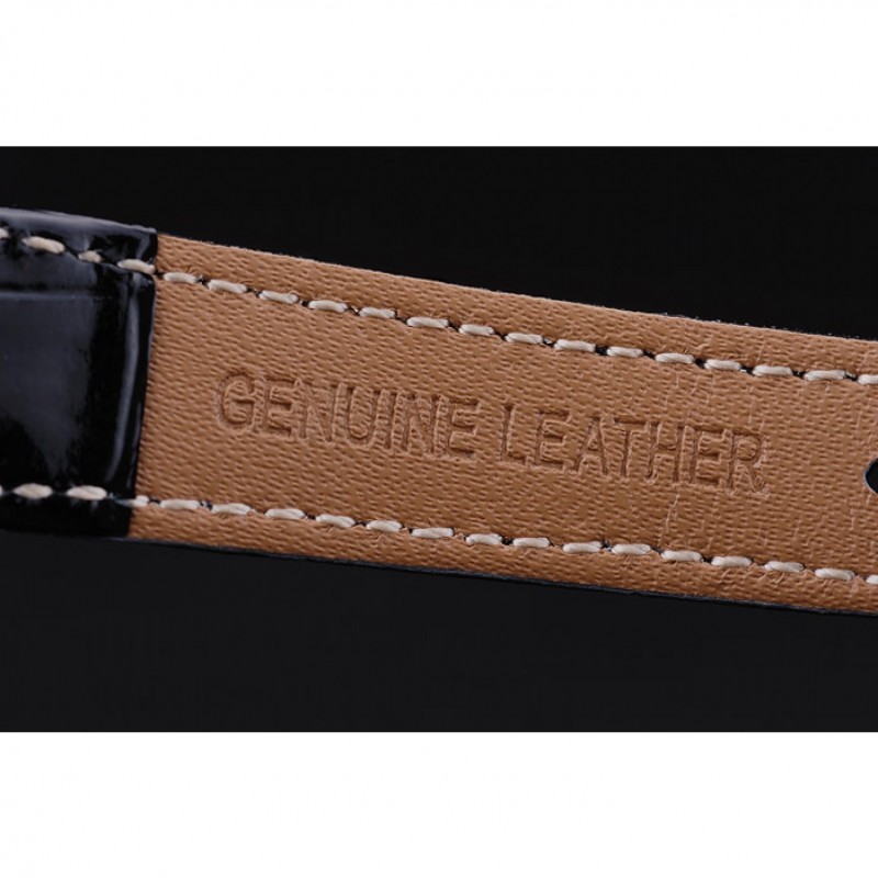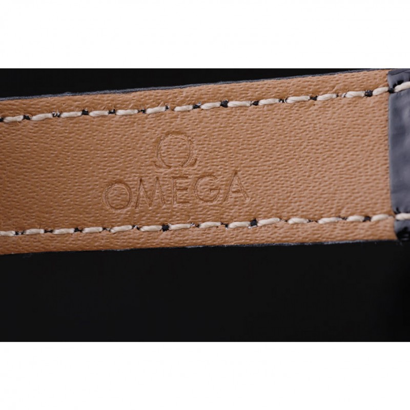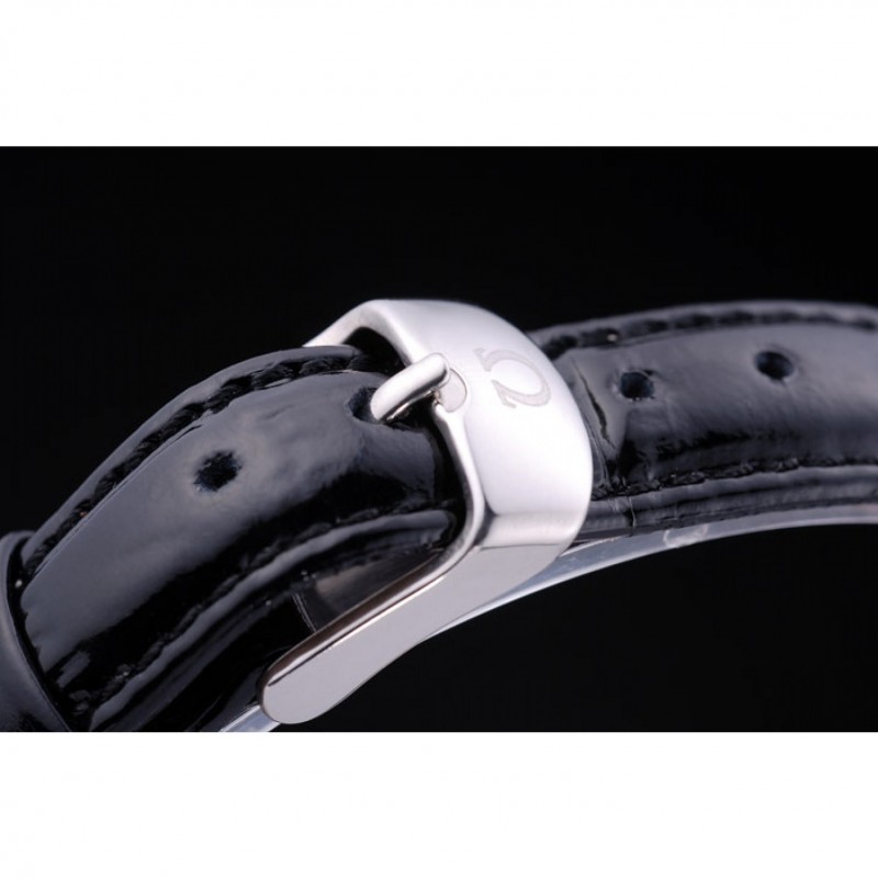 pulsera: correa de piel de cocodrilo calor Omega en relieve patente negro con Omega inscrita pulida de acero inoxidable gancho hebilla de cierre
