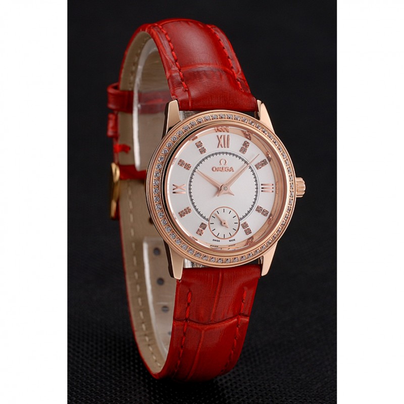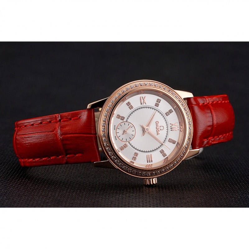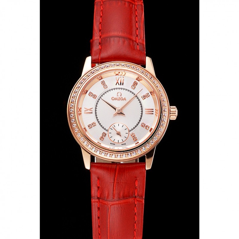 Sé el primero en valorar “Lujo Omega De Ville Prestige pequeños segundos Blanco Dial correa de cuero del diamante del bisel de oro rosa roja Caso”