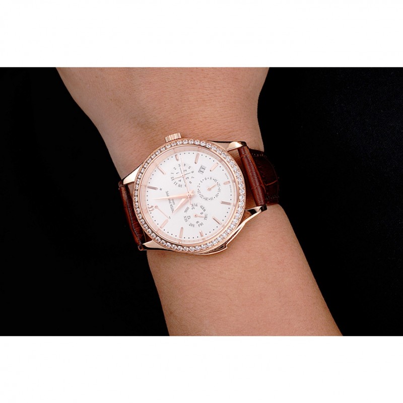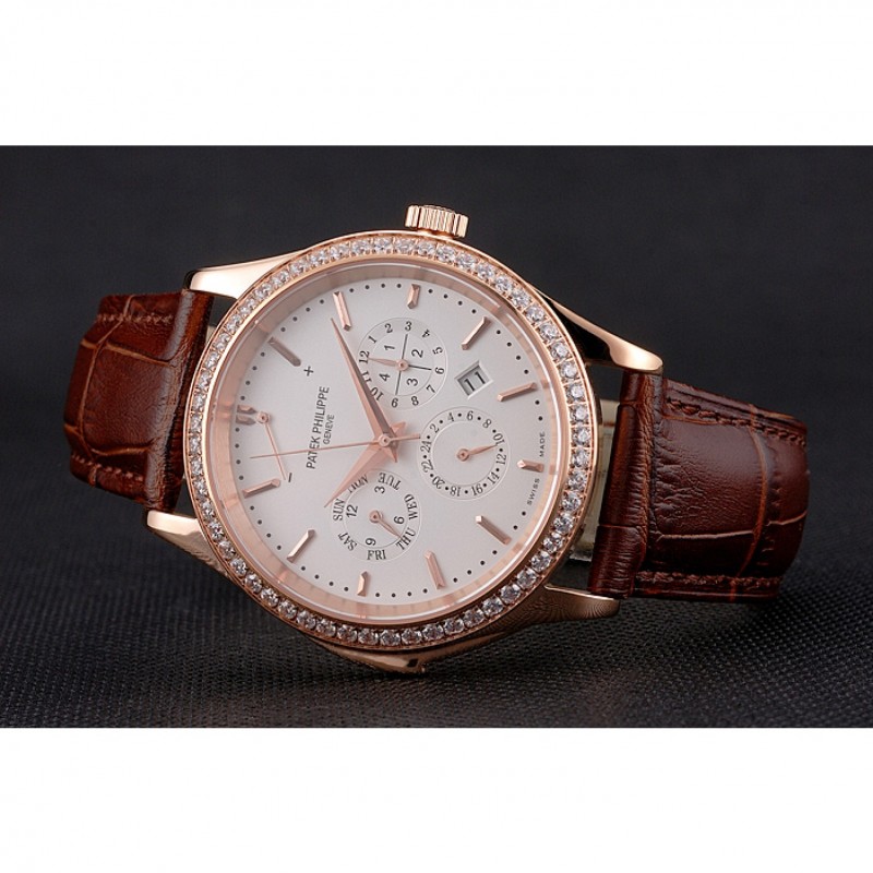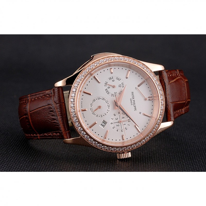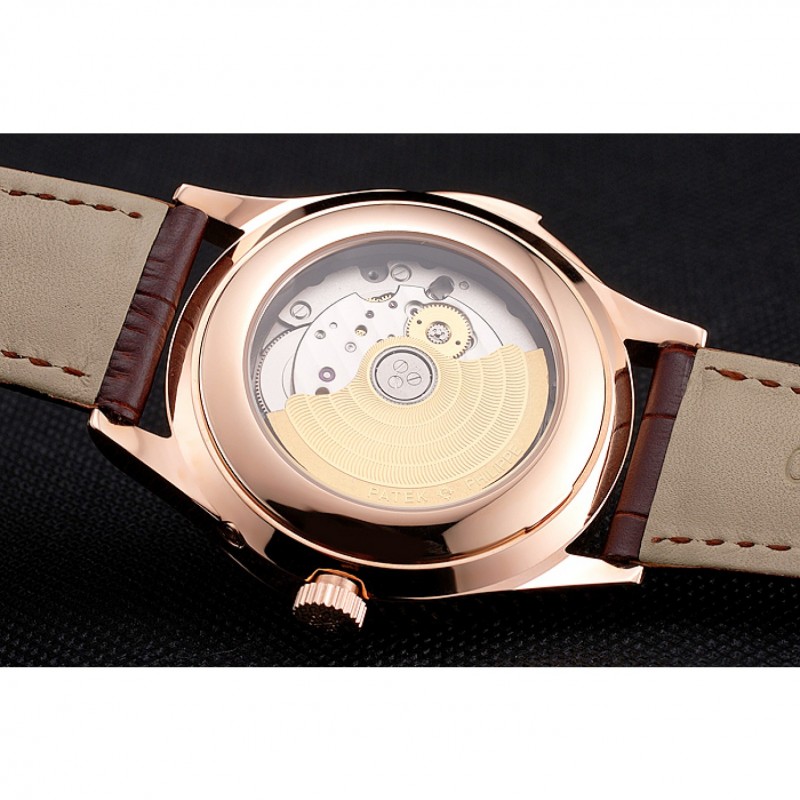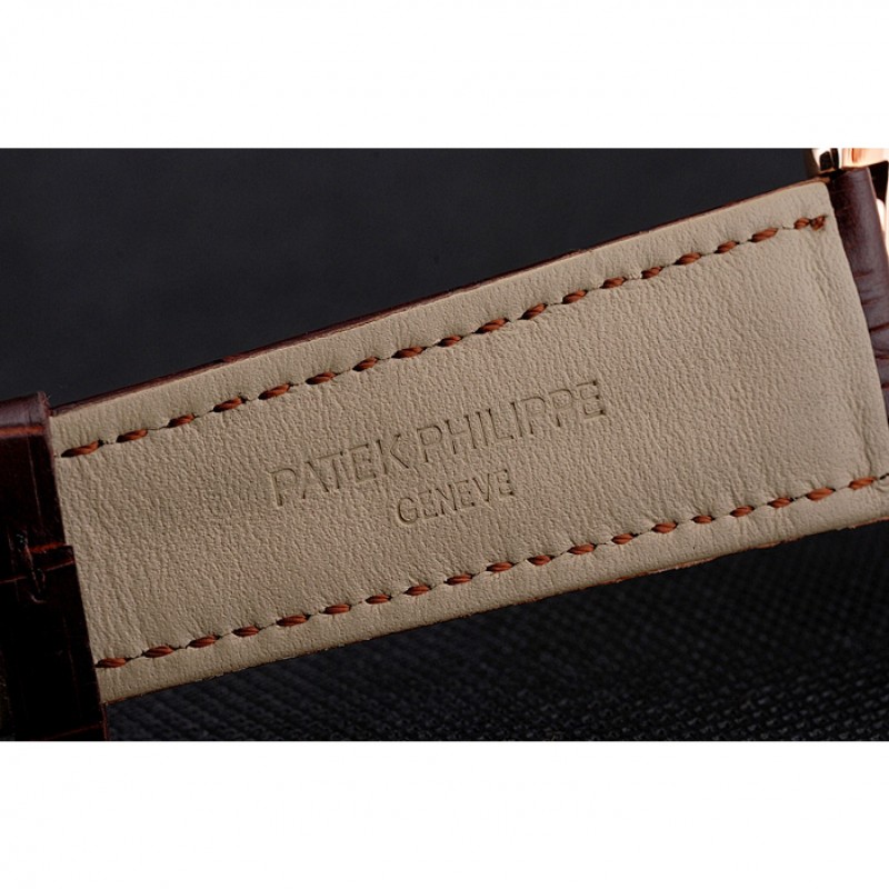 pulsera: calor correa de piel de cocodrilo marrón en relieve Patek Philippe Geneve rosa de 18 quilates chapado en oro gancho hebilla de cierre