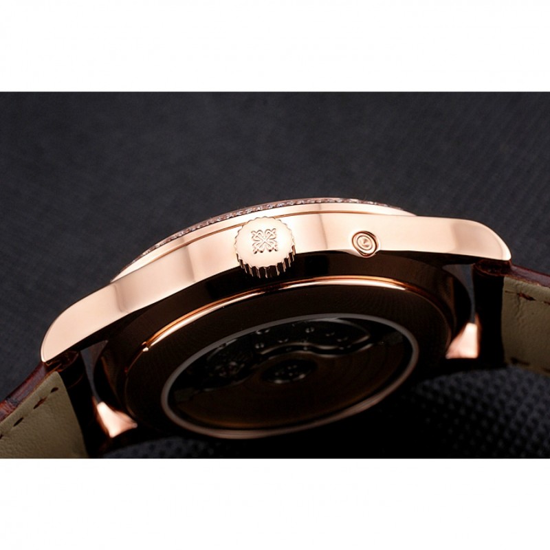 Crown: 18k logo Patek Philippe grabado rosa-chapado en oro cutwork corona