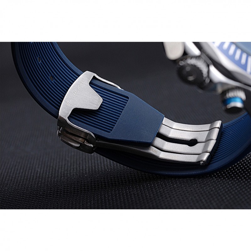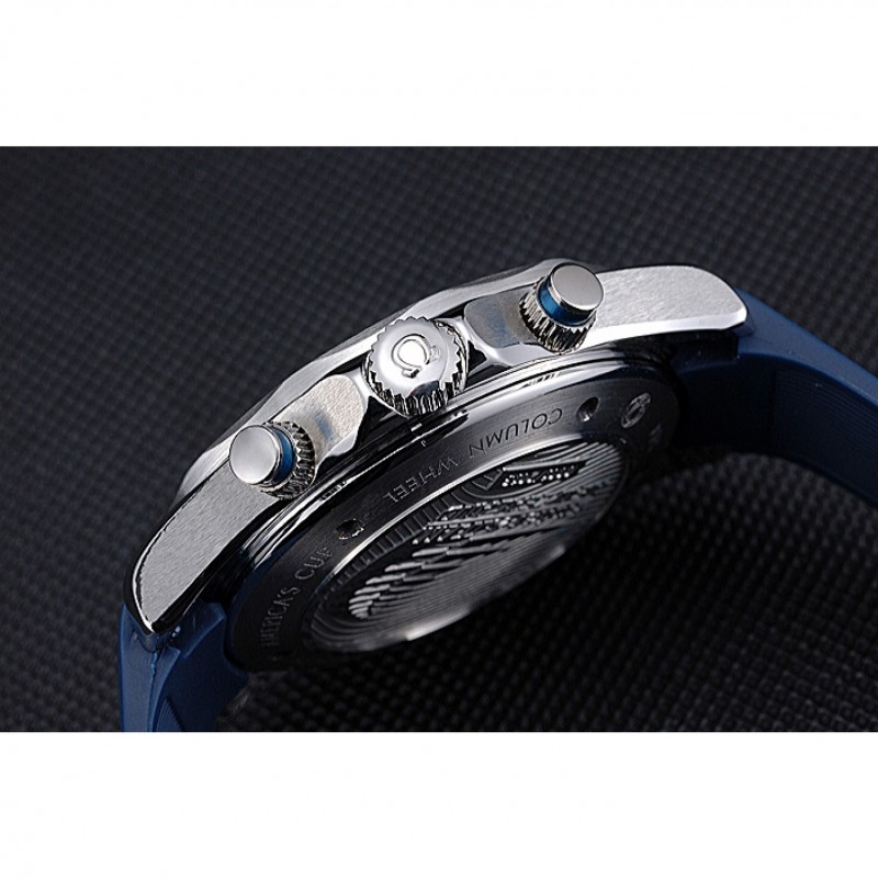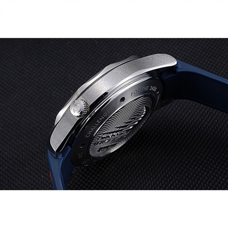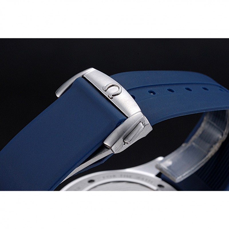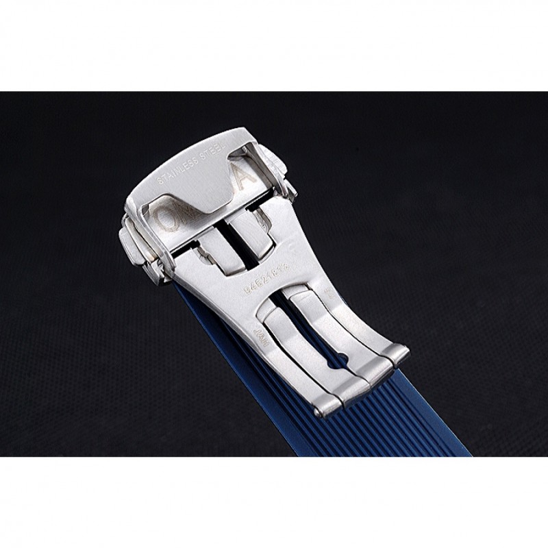 pulsera: correa de caucho azul calor Omega en relieve con logo Omega grabado plegable en acero inoxidable cepillado gancho de liberación empuje corchete