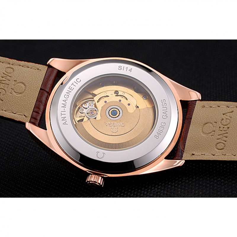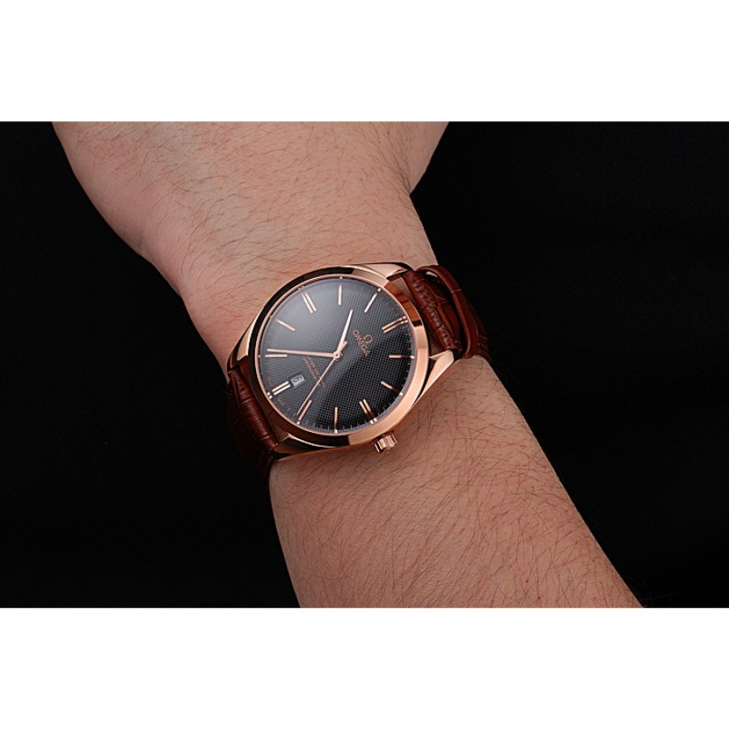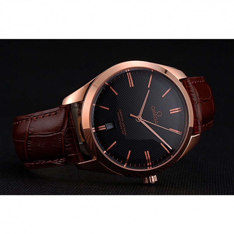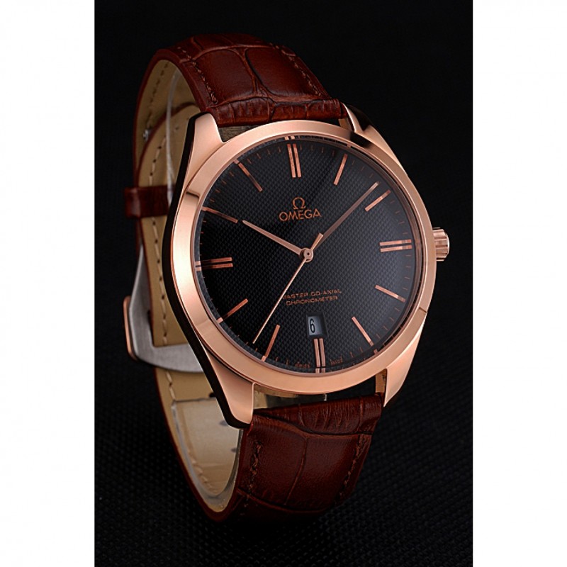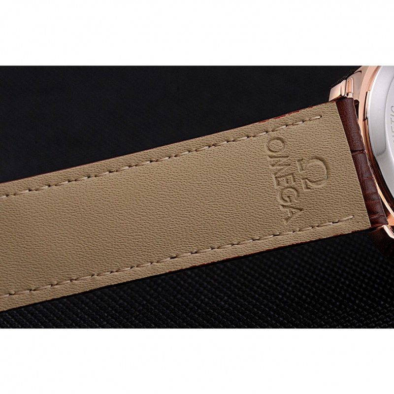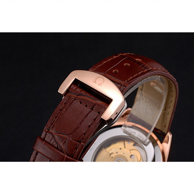 pulsera: logo y el calor Omega en relieve correa de piel de cocodrilo marrón con Omega logotipo de 18k grabado de oro rosa plateado gancho de cierre de